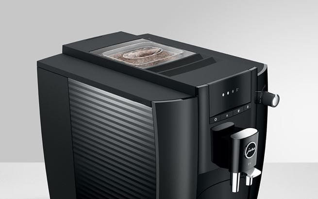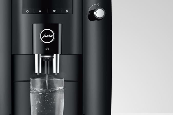 The E4 reflects the characteristic design of JURA coffee machines, with clean lines and surfaces. Crafted with maximum precision, the minimalist lines emphasize the premium quality of the machine. The use of colors follows the same minimalist approach. While the complete body of the machine is in understated Piano Black, chrome-plated details add accents and set off the finished coffee to perfection.