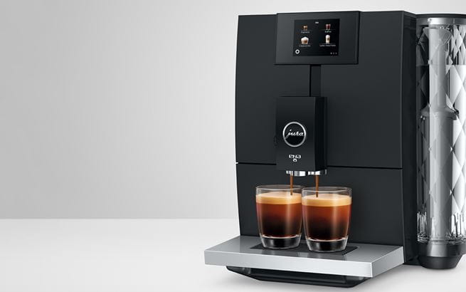 Measuring just 10.7 × 12.7 × 17.5 in, our smallest coffee machine fits in anywhere – without compromising on performance. Although it comes in a compact format, the ENA 8 embodies JURA's unique quality in terms of both coffee and design. The minimalist design with clean lines, high-quality materials and elegant accents, such as the chrome-plated cup tray and the crystal-clear diamond-look water tank, is perfect for those who appreciate both good taste and good coffee.